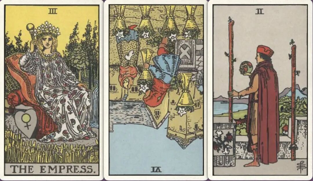 牌:圣杯九+ 宝剑皇帝- 恋人+