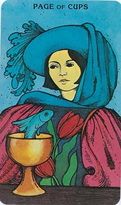 幸运色为粉色,穿粉色针织开衫 + 浅灰色半身裙,搭配珍珠手链,柔和色调契合圣杯侍从的温柔特质,提升亲和力,增进人际和谐。