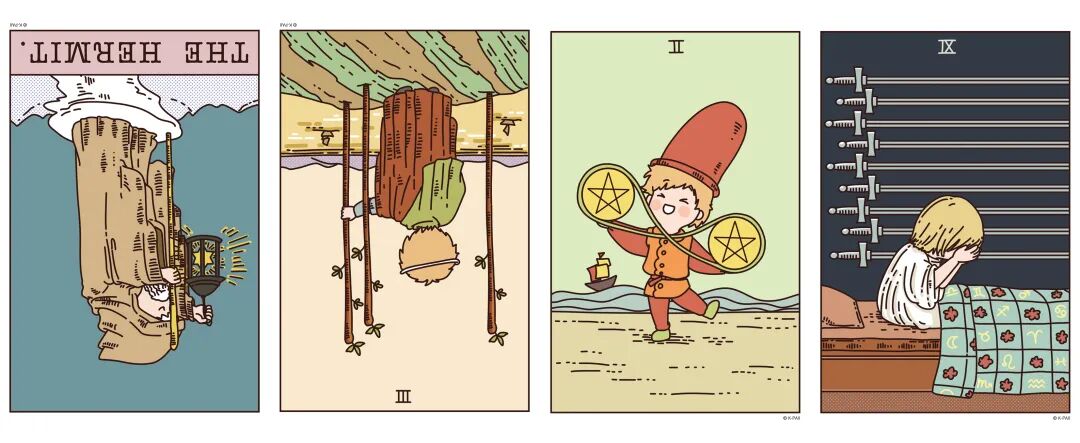 逆位隐士、逆位权杖三