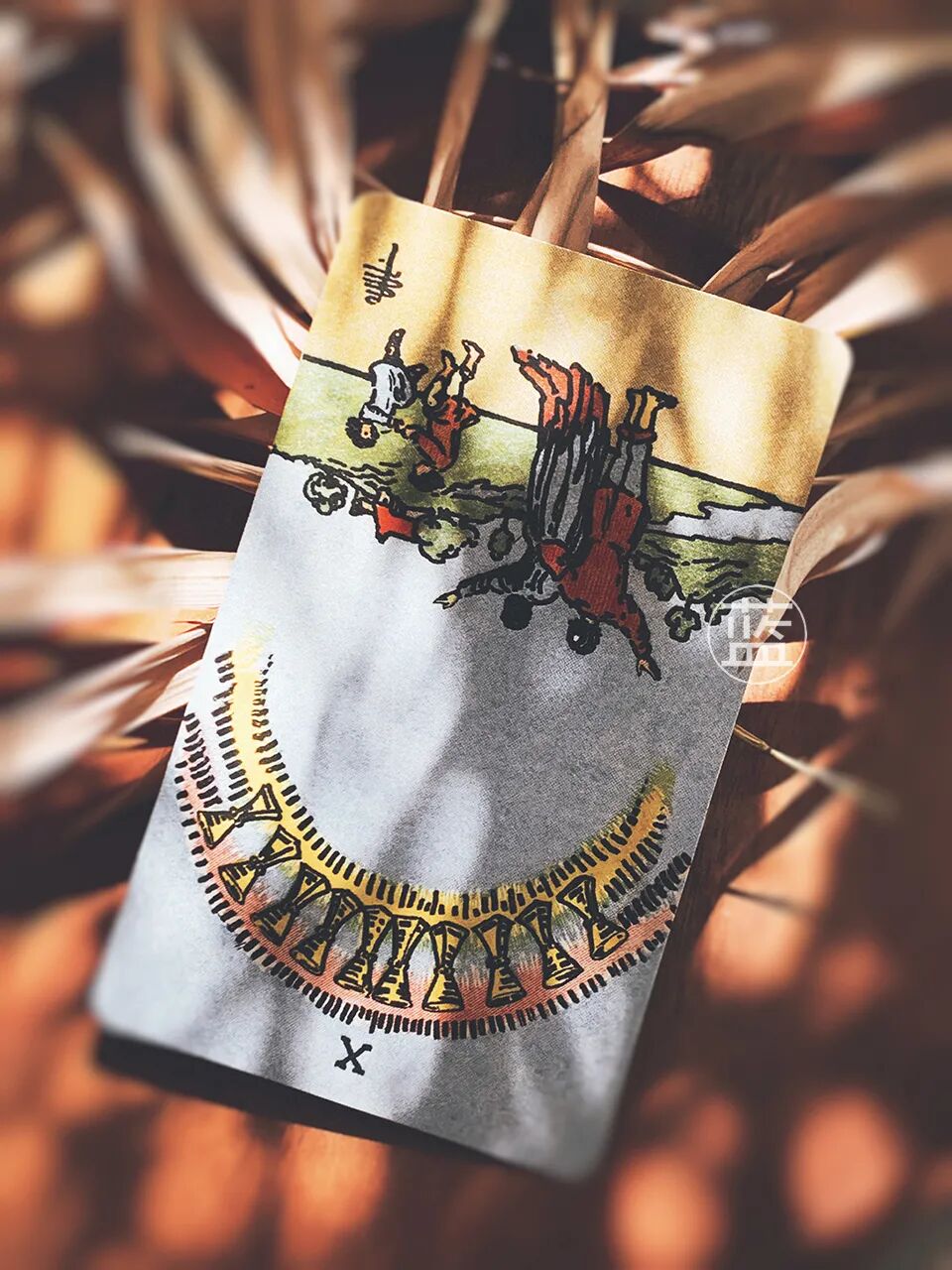 圣杯10本是一张充满了圆满与喜悦的牌面,虽然是逆位,但正向的氛围仍然存在,只是相比正向的圆满,会略有一些失落罢了。这也暗示着本周你可能会有一些反差比较强的情绪变化,比如失落、失望的感受浮上心头。