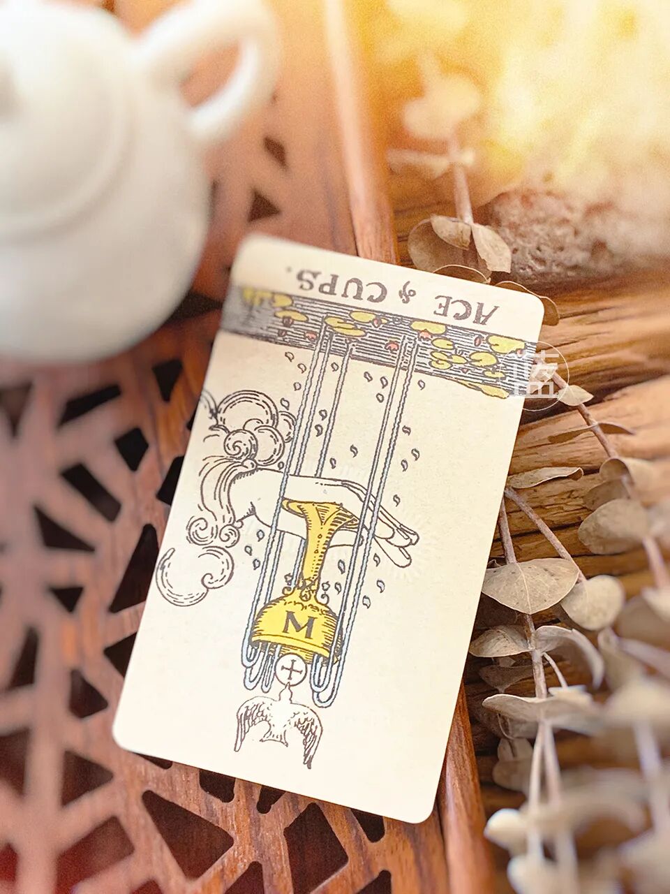 圣杯ACE象征着爱与支持,也预示着新的开始,但逆位时则预示着这一切很可能只是镜花水月,一场空欢喜。虽然你可能存在着某些希望与憧憬,但有些事情最后可能事与愿违,可能会给你带来不小的冲击,甚至让你在很多时候不得不心生失落。如果本周你对感情有什么憧憬的话,恐怕会要落空了。