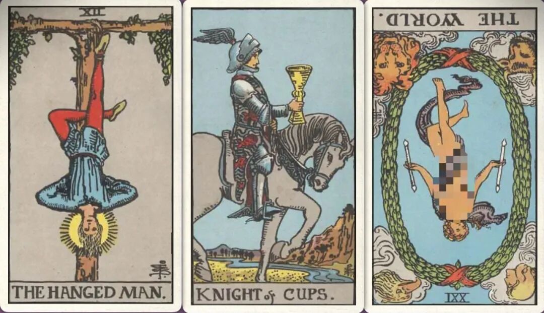 牌:倒吊人+ 圣杯骑士+ 世界-