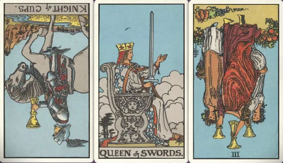 牌:圣杯骑士- 宝剑皇后+ 圣杯三-