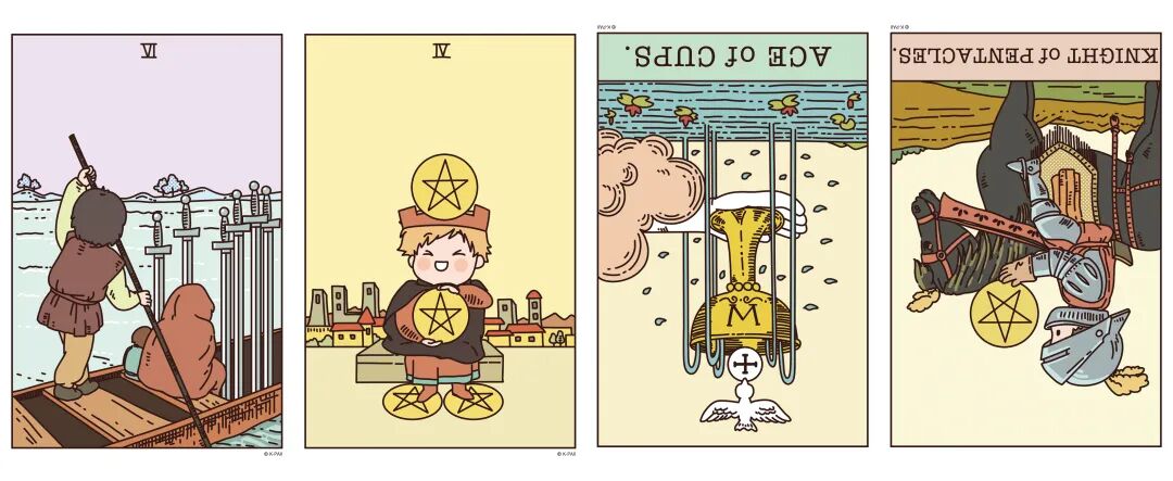 逆位圣杯首牌、逆位星币骑士