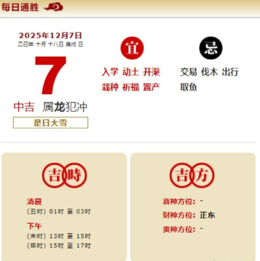 易学董老师:2025年12月7日 每日通胜+今日生肖红黑榜