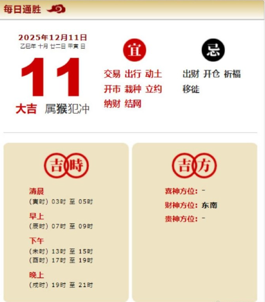 易学董老师:2025年12月11日 每日通胜+今日生肖红黑榜