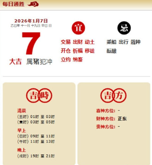 易学董老师:2026年1月7日 每日通胜+今日生肖红黑榜