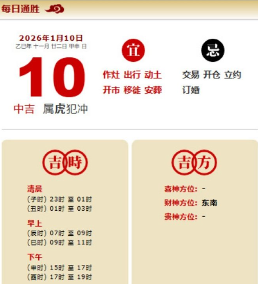 易学董老师:2026年1月10日 每日通胜+今日生肖红黑榜