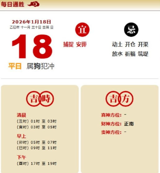 易学董老师:2026年1月18日 每日通胜+今日生肖红黑榜