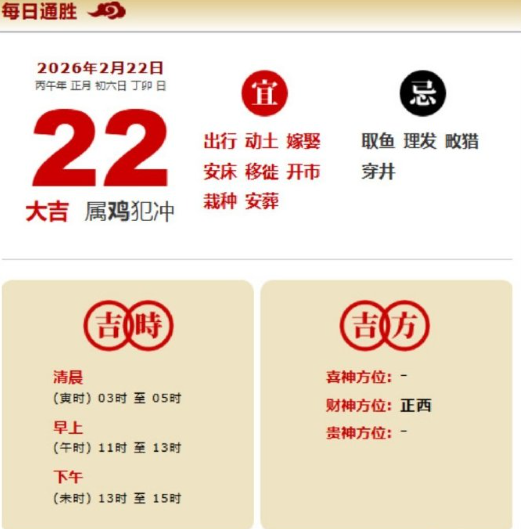 易学董老师:2026年2月22日 每日通胜+今日生肖红黑榜