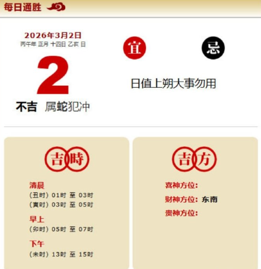 易学董老师:2026年3月2日 每日通胜+今日生肖红黑榜