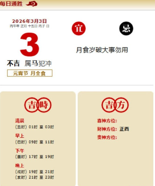 易学董老师:2026年3月3日 每日通胜+今日生肖红黑榜