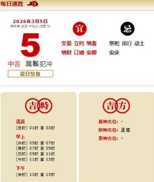 易学董老师:2026年3月5日 每日通胜+今日生肖红黑榜