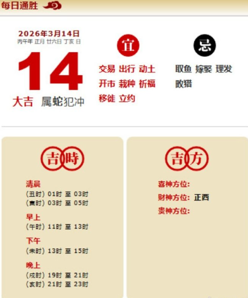 易学董老师:2026年3月14日 每日通胜+今日生肖红黑榜