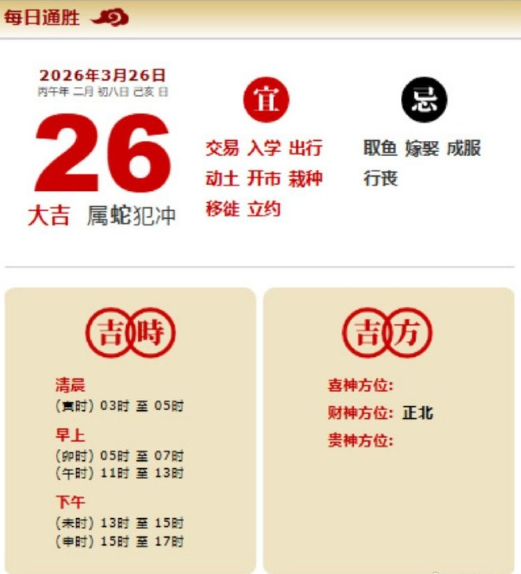 易学董老师:2026年3月26日 每日通胜+今日生肖红黑榜