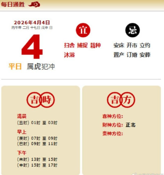 易学董老师:2026年4月4日 每日通胜+今日生肖红黑榜