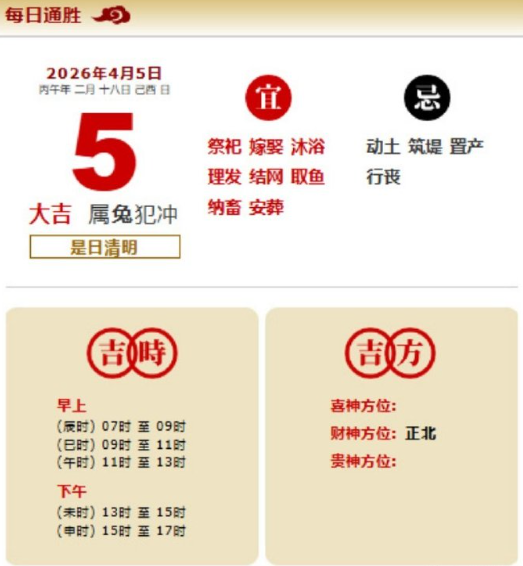 易学董老师:2026年4月5日 每日通胜+今日生肖红黑榜