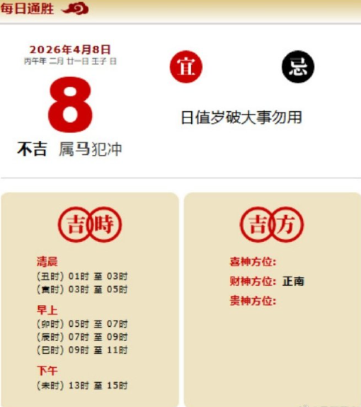 易学董老师:2026年4月8日 每日通胜+今日生肖红黑榜