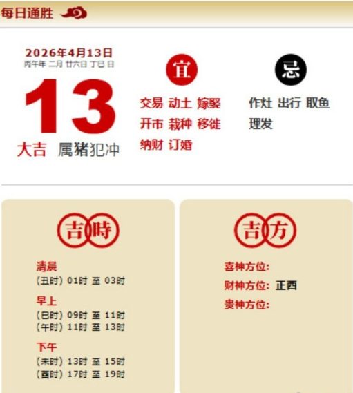 易学董老师:2026年4月13日 每日通胜+今日生肖红黑榜