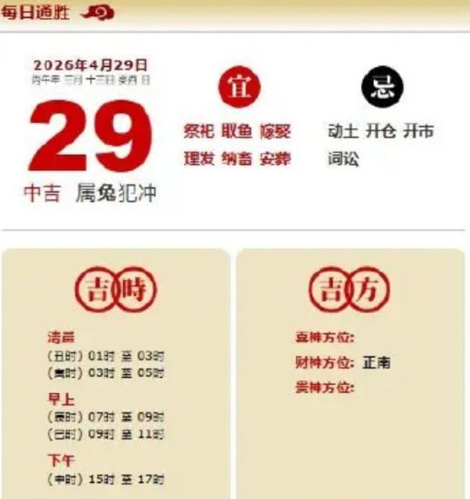 易学董老师:2026年4月29日 每日通胜+今日生肖红黑榜