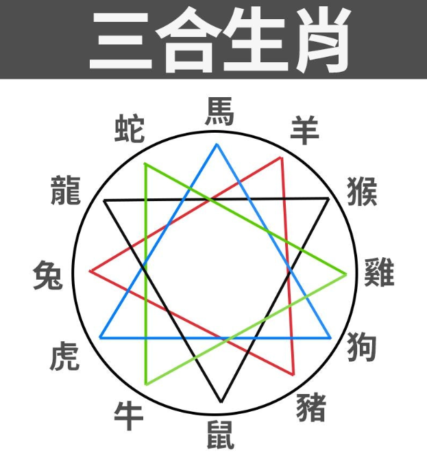 「三合」及「六合」都属于生肖相旺吉配,合则为顺,传统相信代表诸事顺畅、顺心,互助互惠,当中「三合」有4组,「六合」则有6组。