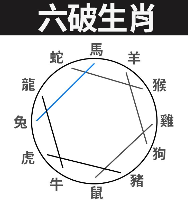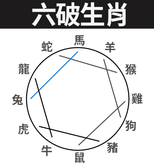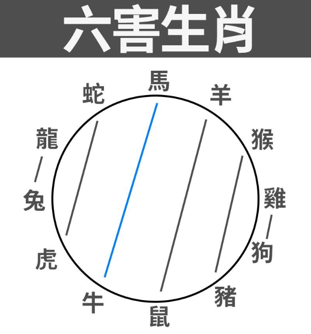 先说「六冲」,就是正对面的生肖,例如马及鼠就是相冲生肖。「六冲」就是「六合」相反,相克且不利。至于「六破」,「破」代表损坏或破裂,若流年「破太岁」,更代表破败、破财,不利流年运程。「六害」方面,顾名思义就是生肖相害关系,如马就与牛相害。