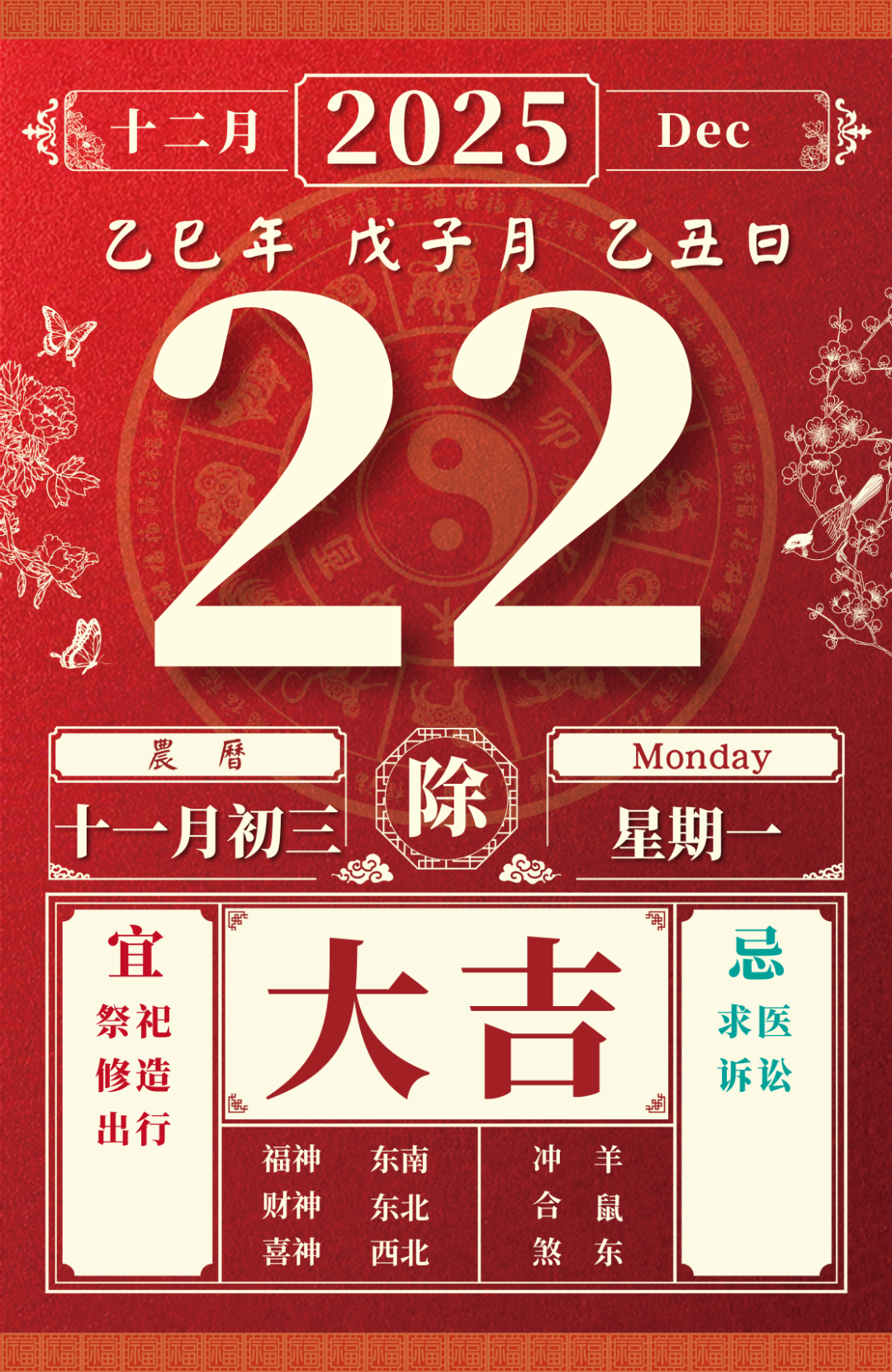 旺运方位:此日利于朝南方出行;东北方不宜。