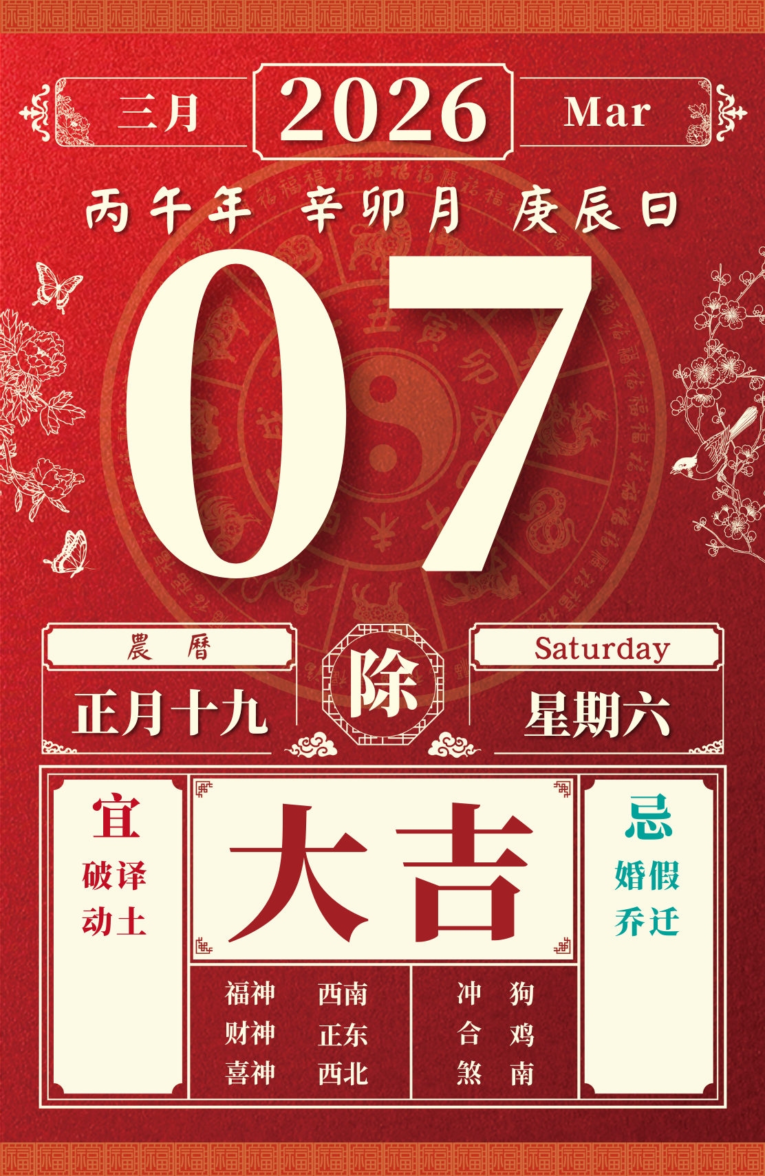旺运方位:此日利于朝东南方出行;西北方不宜。