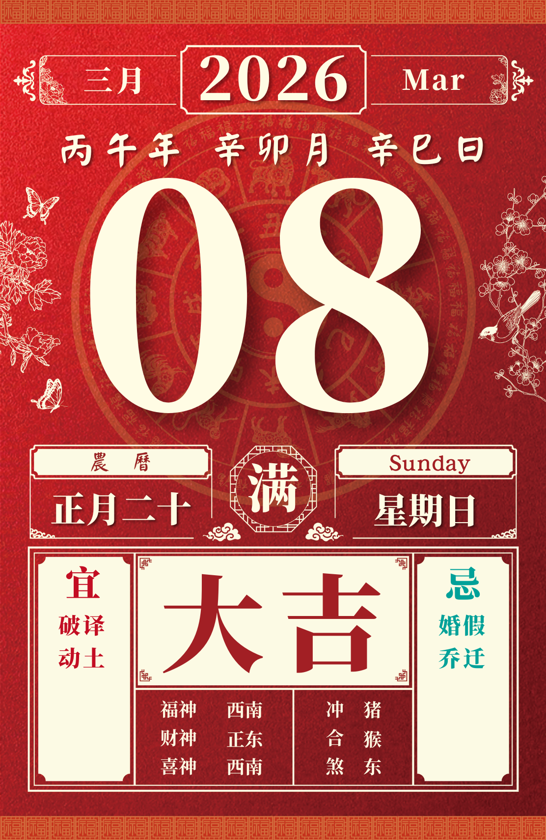 旺运方位:此日利于朝西南方出行;北方不宜。