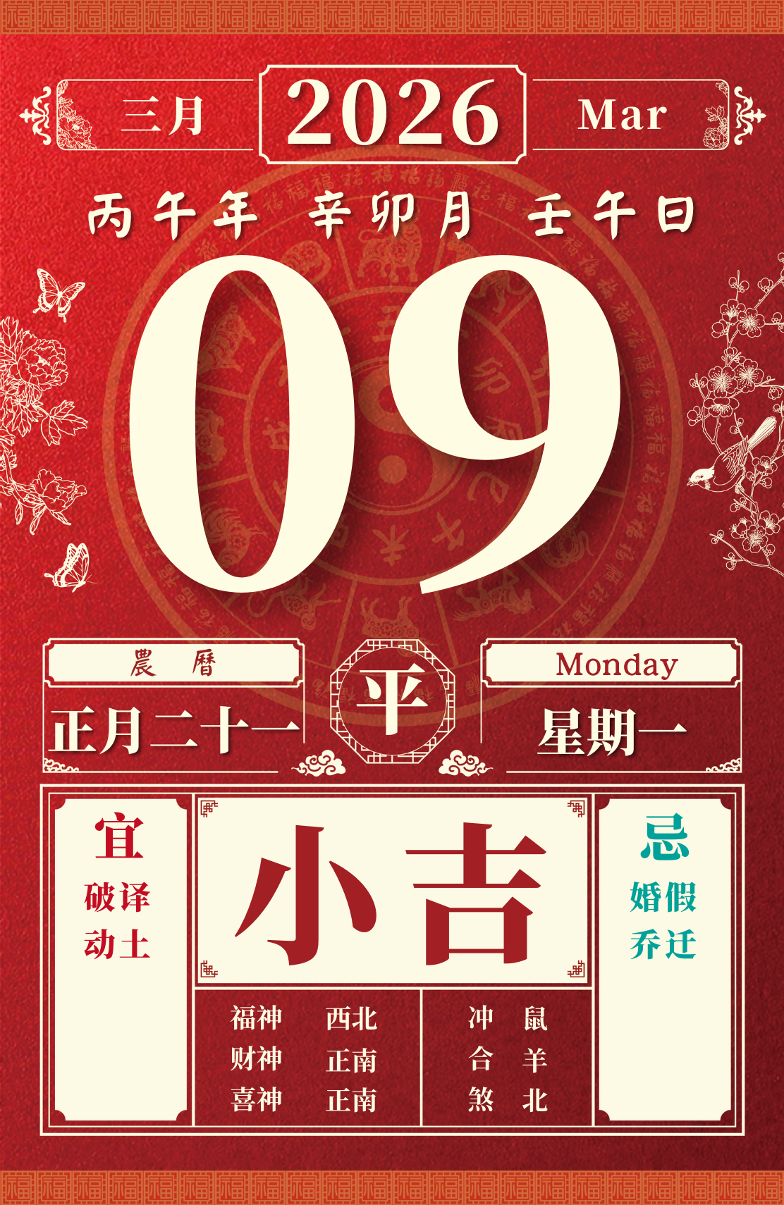 旺运方位:此日利于朝北方出行;西南方不宜。