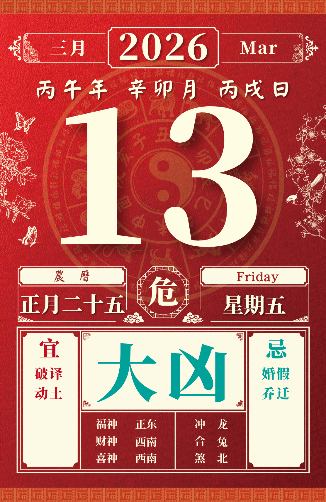 旺运方位:此日利于朝南方出行;东北方不宜。