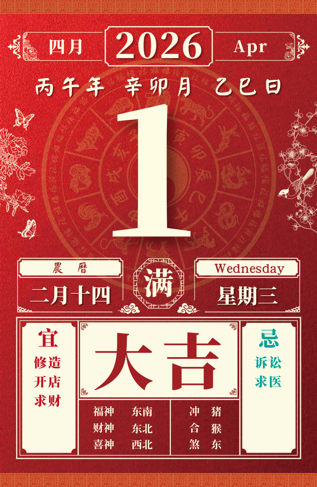 旺运方位:此日利于北方出行;西南方不宜。