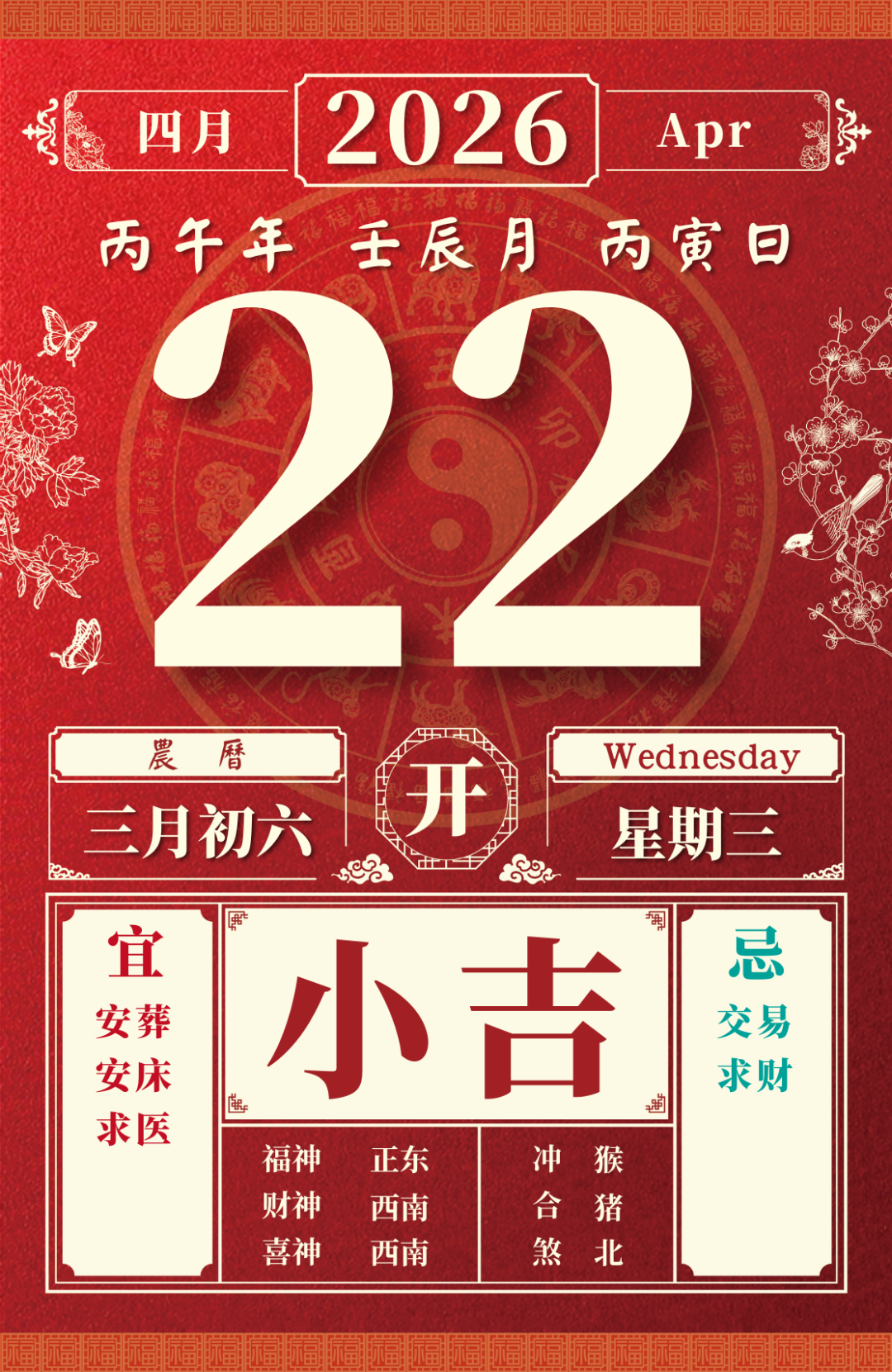 旺运方位:此日利于朝南方出行;北方不宜。