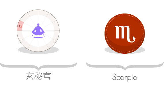 当第十二宫落入天蝎座,其宫主星为火星与冥王星。这两颗行星共同赋予此宫位强烈的心理张力和深度,使得个体在潜意识层面带有天蝎式的深刻与激烈。