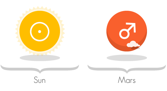 这种合相象征意志力,体现在需要力量与勇气的行动之中。它是纯粹的阳性相位,由太阳与火星共同主宰的宫位,指向充满活力与才能的领域,其意义与合相所在的宫位相互呼应。太阳代表展现力量的自然倾向,火星则象征行动本身,拥有此合相的人往往积极而果断。其积极程度取决于合相所在的宫位与形态,同时也受太阳和火星所主宰宫位的影响,以及合相与其他行星形成的相位关系。