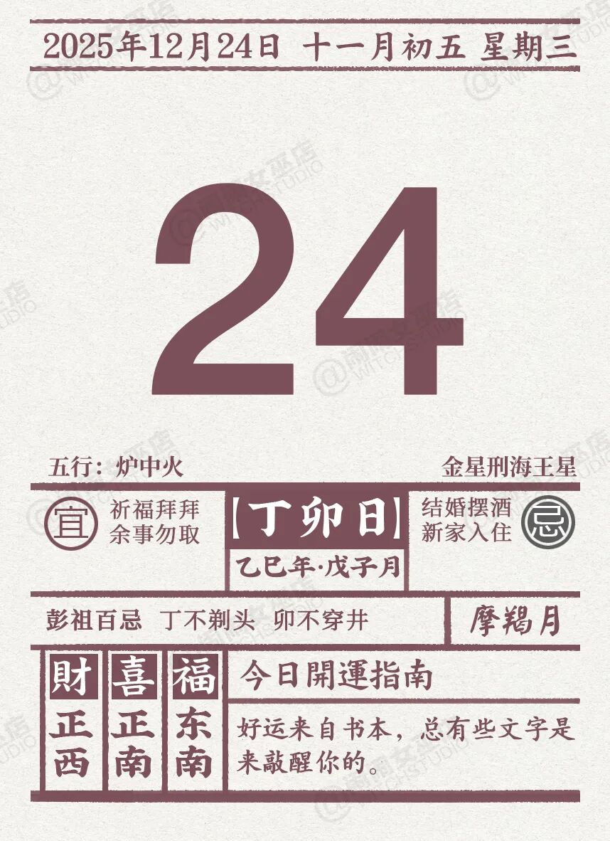 闹闹女巫店今日运势2025年12月24日