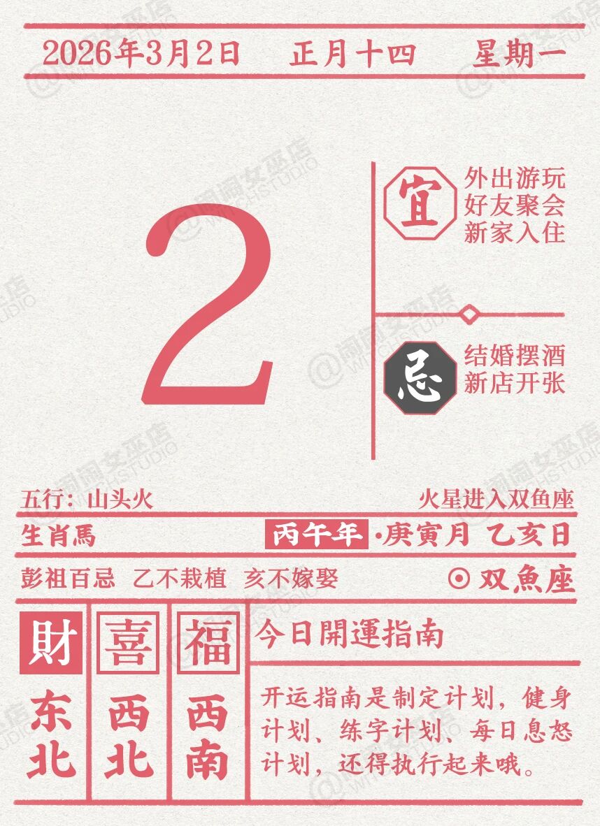闹闹女巫店今日运势2026年3月2日