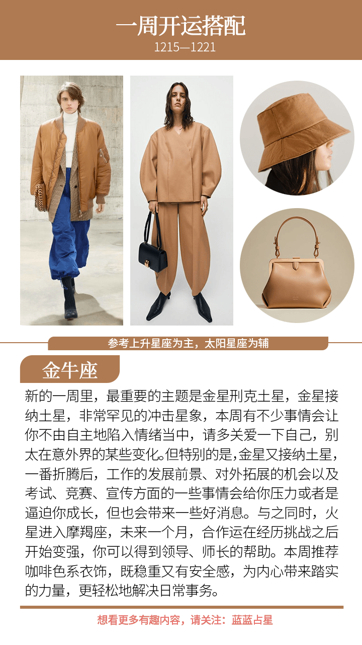此外,本周还有一个不利星象,金星和土星怼了起来。两者力量都很强,我们在感情、金钱上很容易出现某些挣扎感,有一种被抗击的感觉;或者是想要一个满意的答案,却总是遇到一些难以搞定的现实难题。
